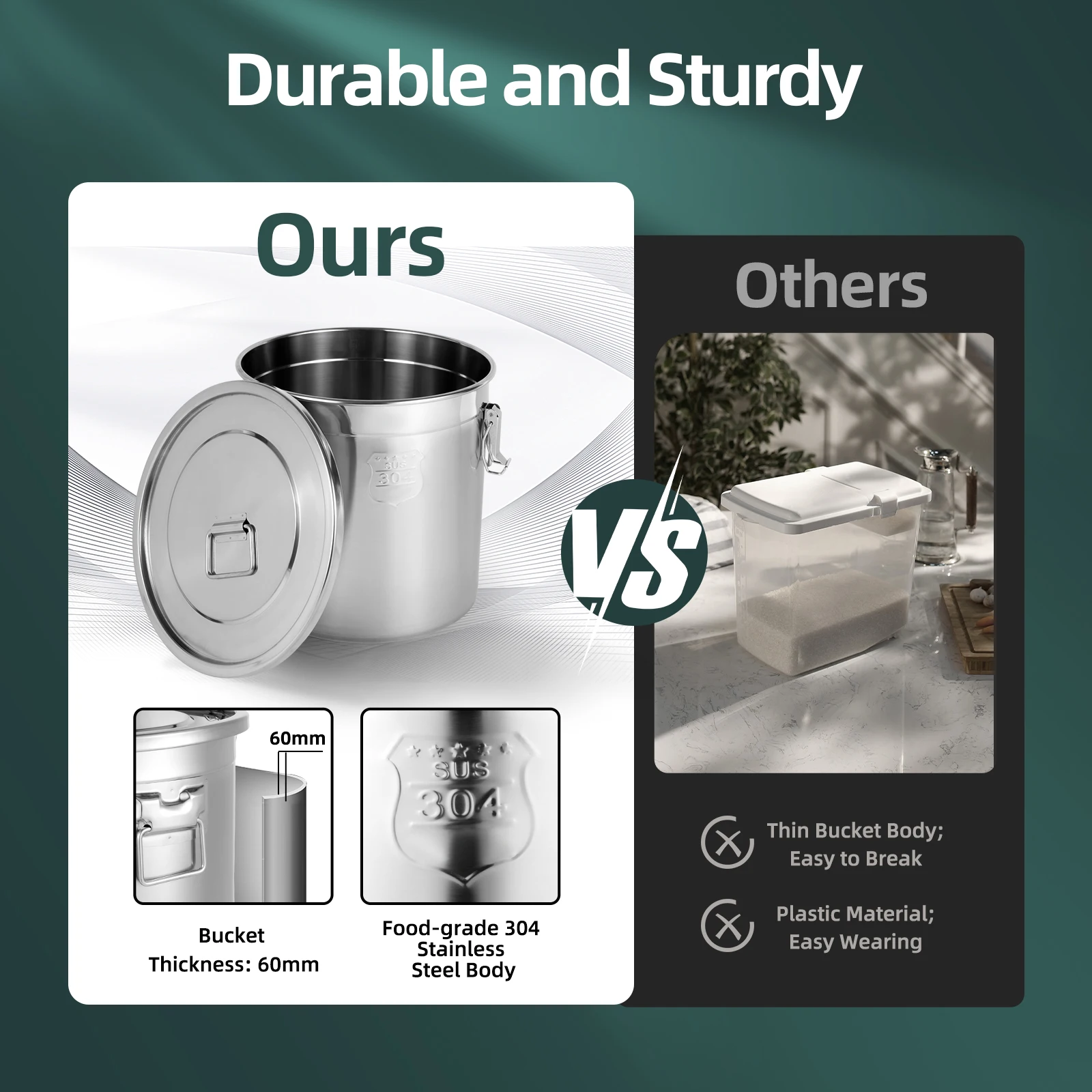 Superior Material: Made of food-grade 304 stainless steel, this airtight canister is smooth and durable, stain-resistant, rust-proof, corrosion-resistant, and non-toxic, so you can store your food with confidence.