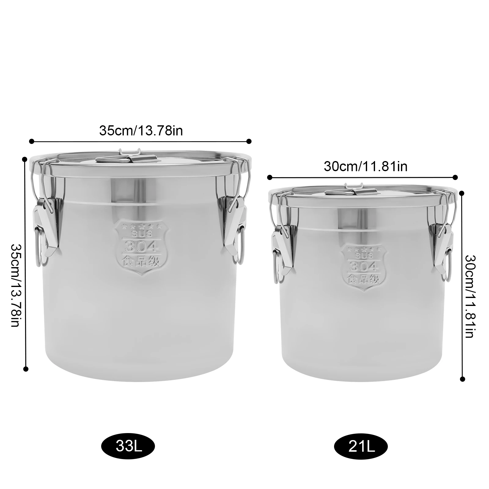 304 Stainless Steel 21L/33L Airtight Canister Household Kitchen Food Grain Rice Sealed Storage Bucket Food-grade Container