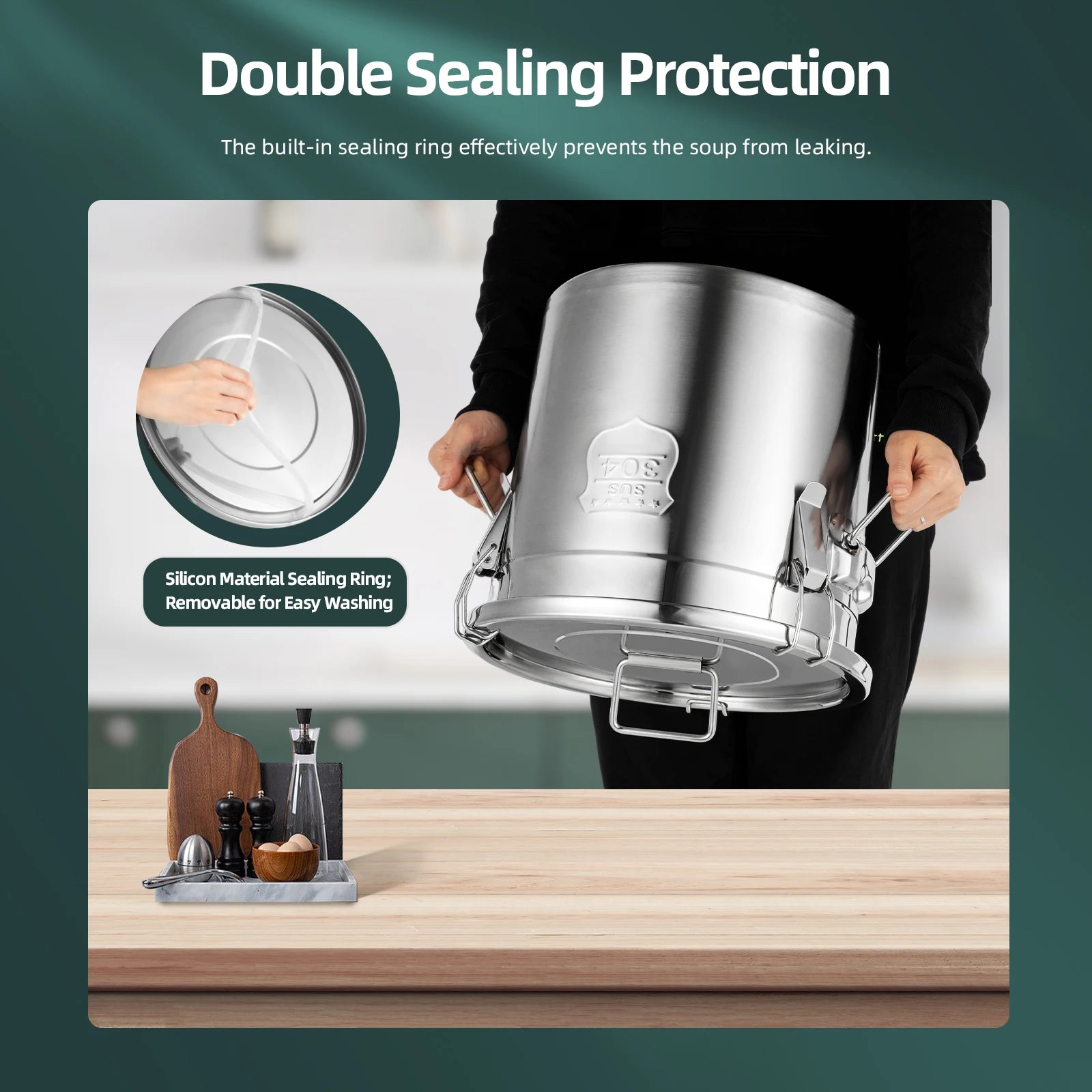 This stylish and simple stainless steel storage bucket with a lid is made of food-grade 304 and 201 stainless steel and has a high-quality silicon sealing ring, which will keep your food fresh and dry. It can not only store food but also heat food. Such a simple and practical bucket is a good helper in different scenes.