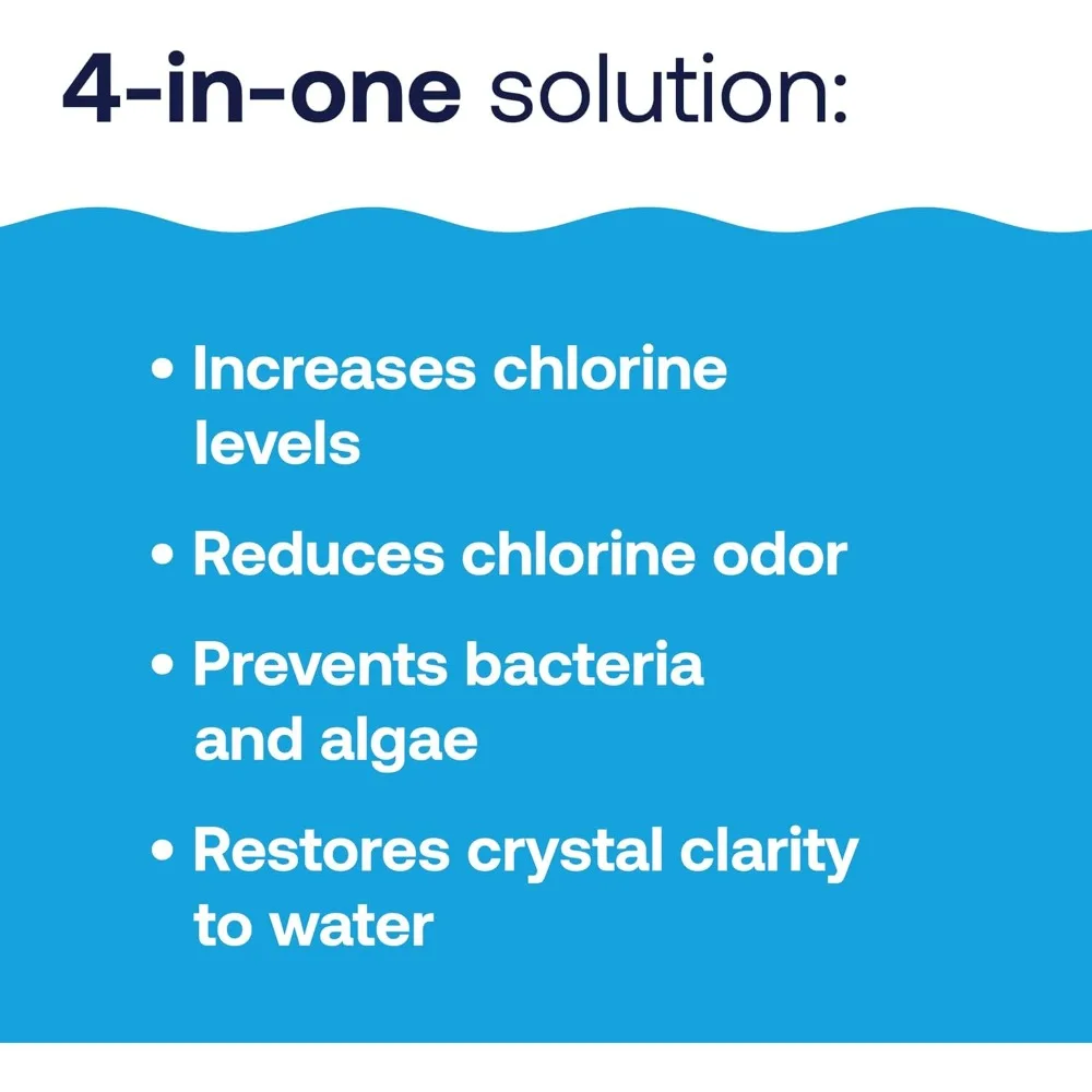 • BENEFITS: Stay all clear for cannonballs; This fast-dissolving, convenient 4-in-1 formula kills and algae, reduces chlorine odor and irritation, and quickly restores crystal clarity