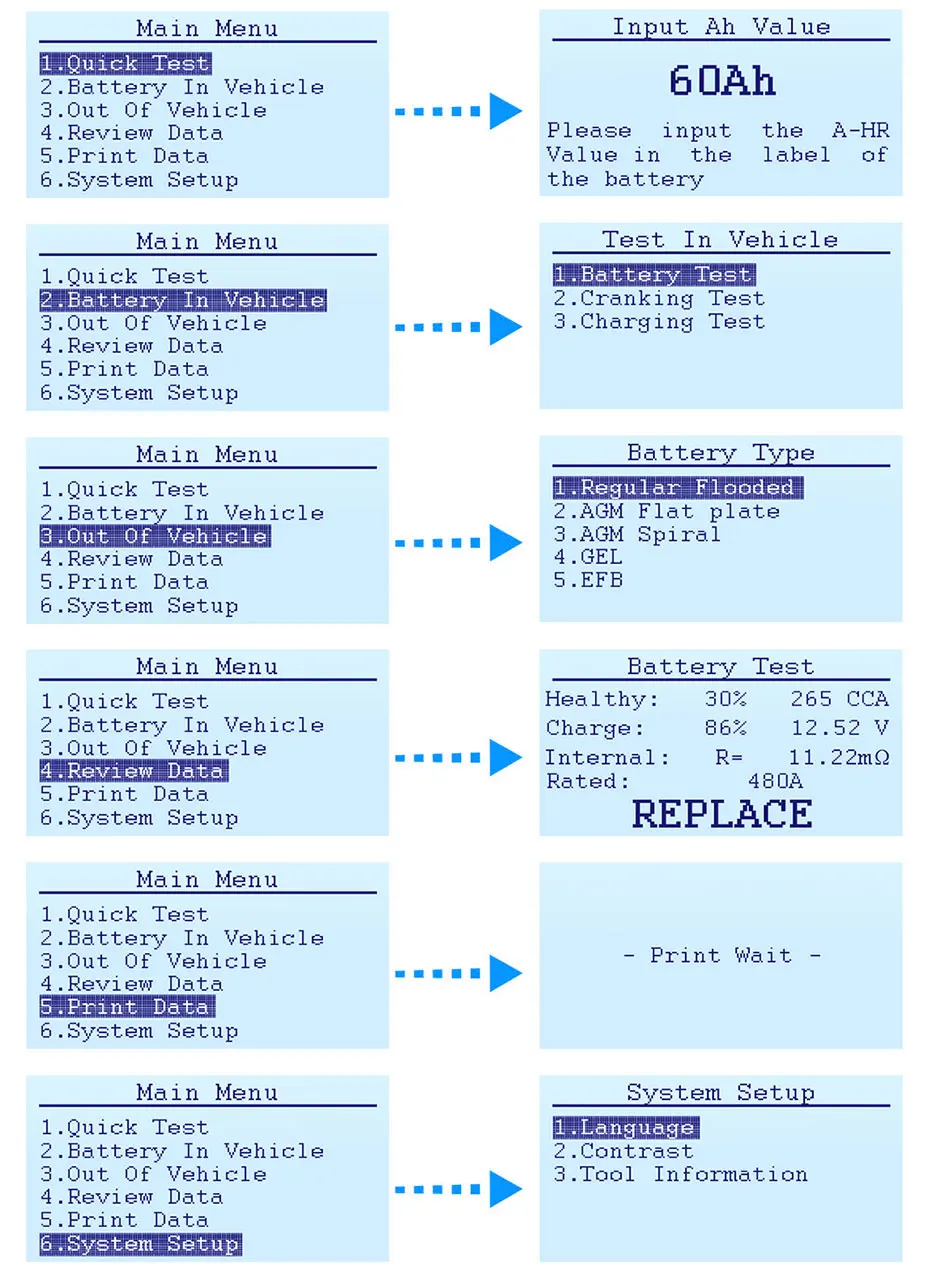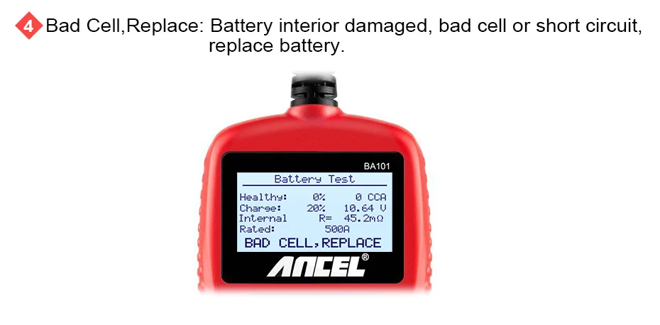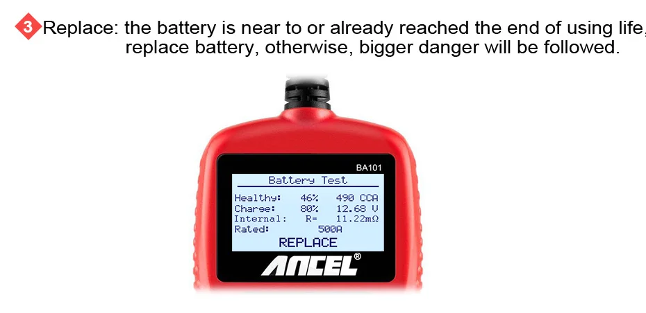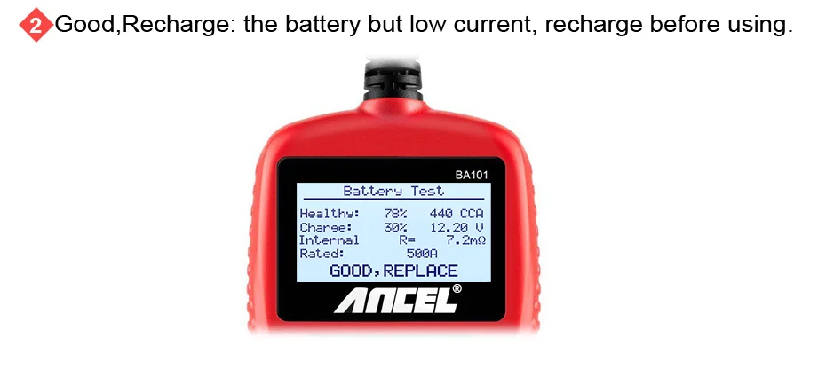 It can make sure the battery status, including voltage, CCA, electronic resistance, rated CCA, charging value, healthy value and testing result in one second. Once input the AH valuemdashbattery rated capacity, which is marked in the label of the battery.