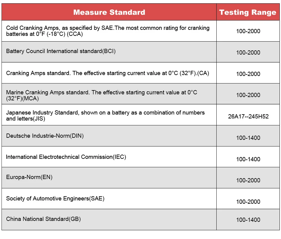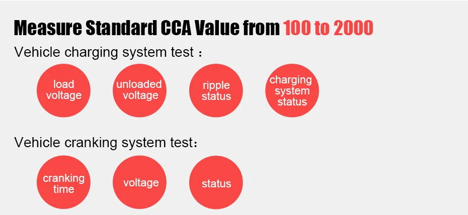 BA101 can test CCA100-2000, 30-220Ah, which is the highest CCA in the market