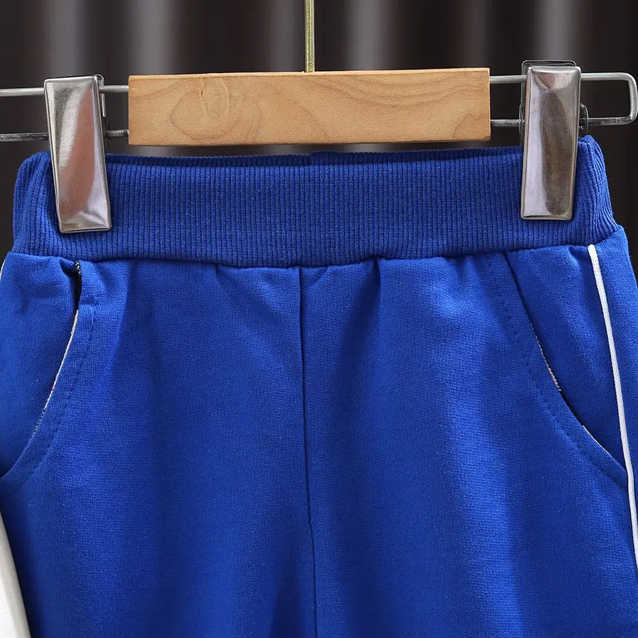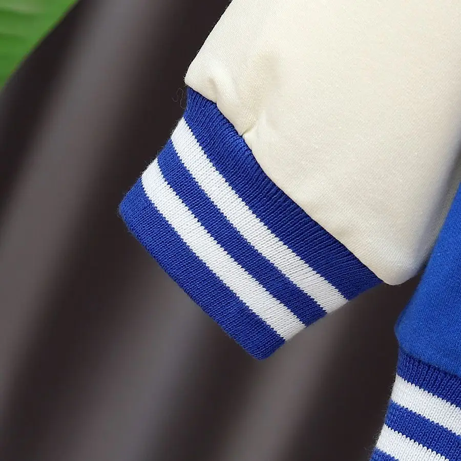 Boys' autumn letter baseball single-breasted jacket+round neck printed cotton long sleeve+striped sweatpants 3Pcs suit