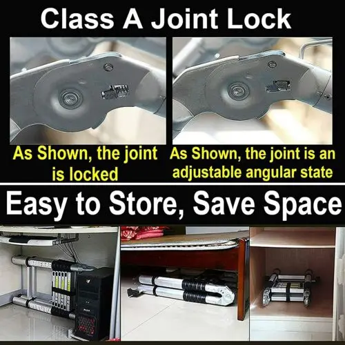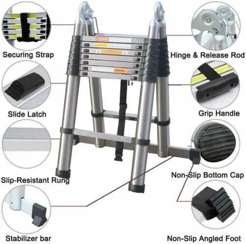 🔥【EXTENSION & RETRACTION DESIGN】The telescopic ladder can extend. Unique Extend and Locking Mechanism with Slide Latches, every section is designed to open and close safely. One hand holds upper pipe and the other hand pushes the slide latches of both side, then the ladder will slide down effortlessly. No matter what work you do, you can adjust the height of the ladder and lock it according to your needs.