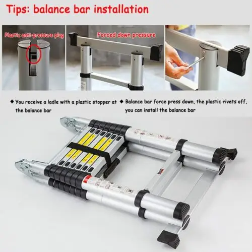 Multi-purpose telescopic ladder 3.8 m Extension ladder Height adjustable with non-slip feet Stainless steel telescopic ladder 330 LB Load capacity