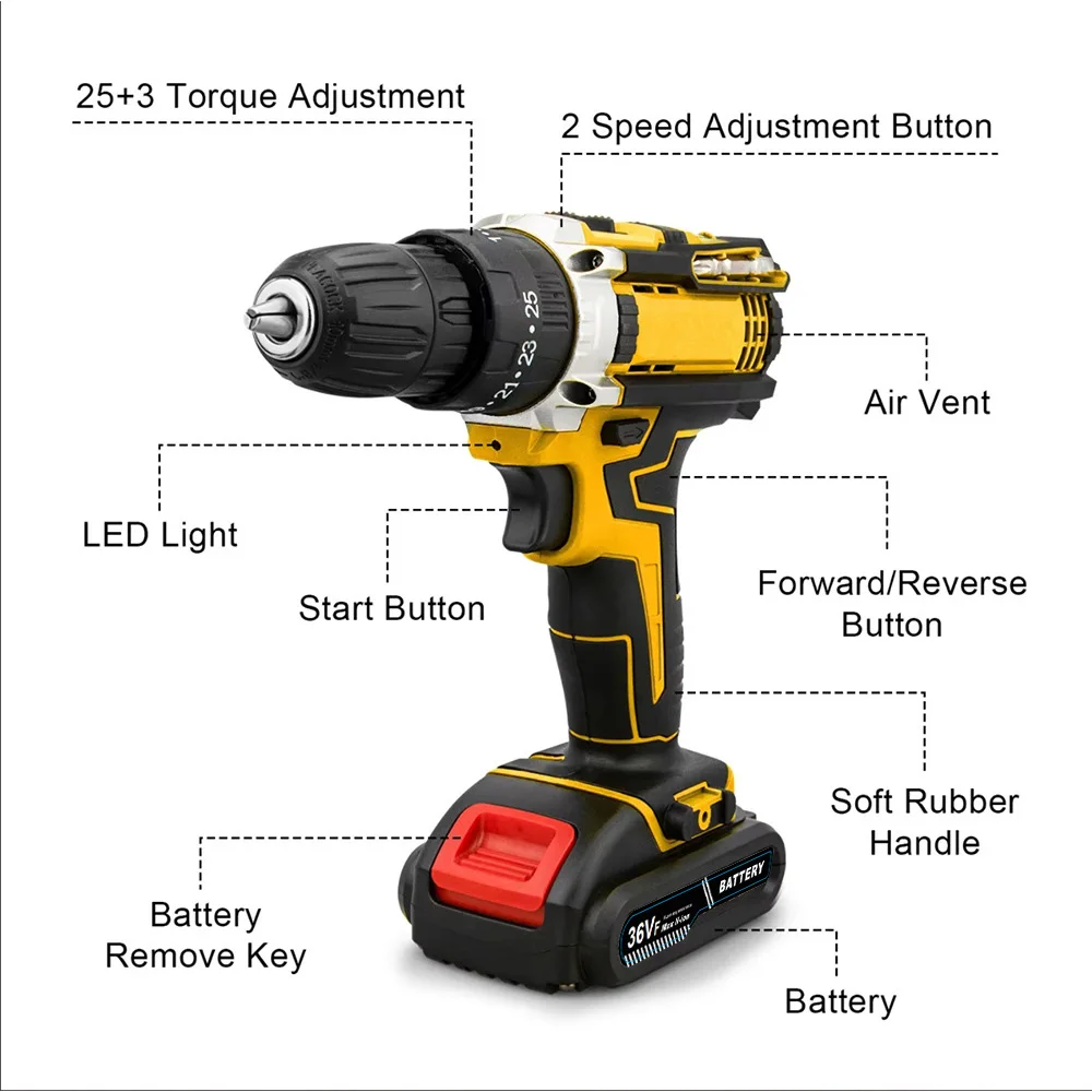 Industrial Grade Double Speed Lithium Drill Electric Hand Drill Electric Screwdriver Household Electric Drill Tool Suit