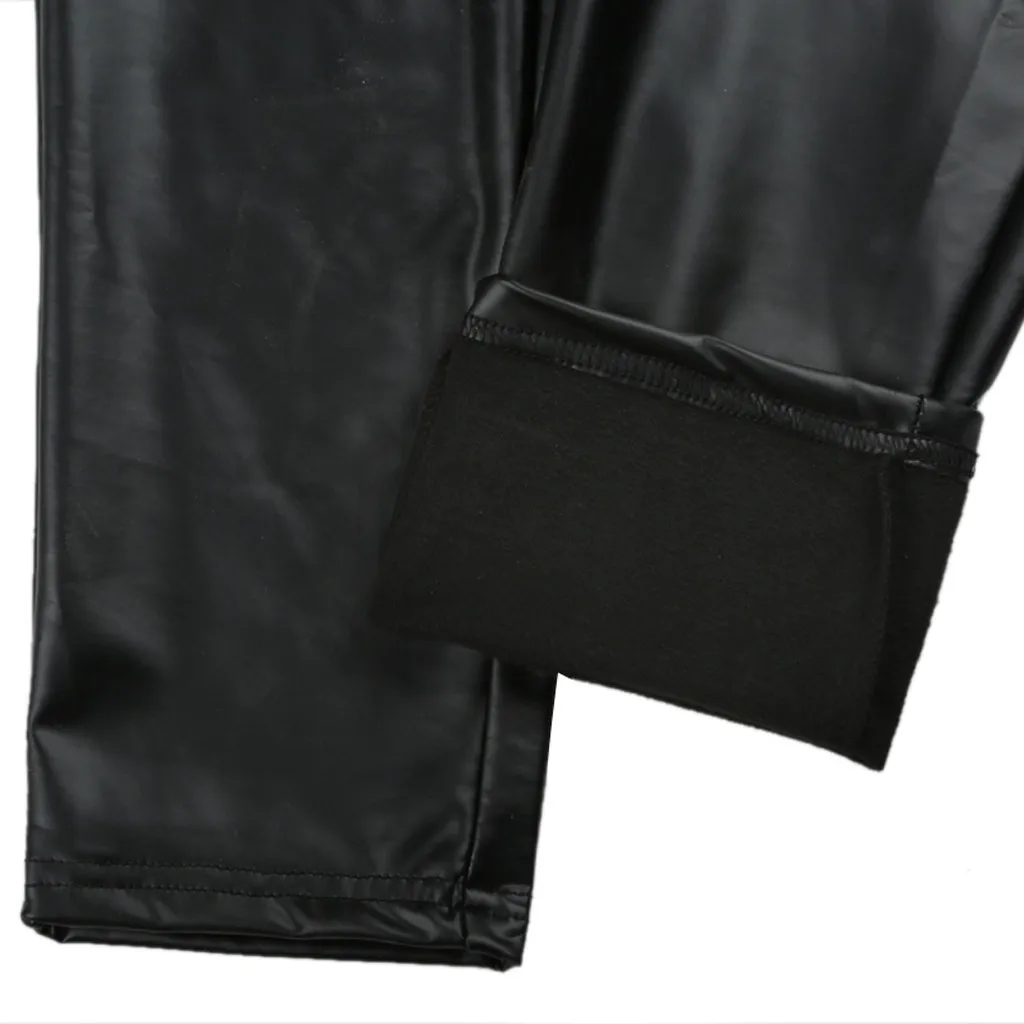 Women Solid Black Slim Leather Pants Casual Stretch Pencil Trousers Thick Pants