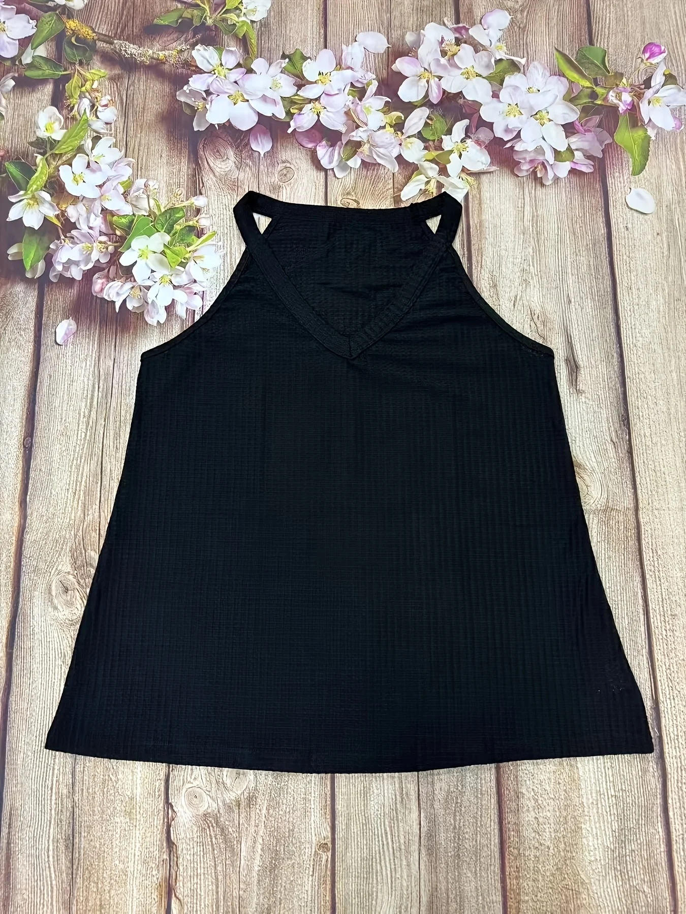 Women's Plus Size Summer V-Neck Tank Top, Casual Knit Polyester 95% Spandex 5% Fabric, Solid Color, Medium Stretch, Regular Fit,