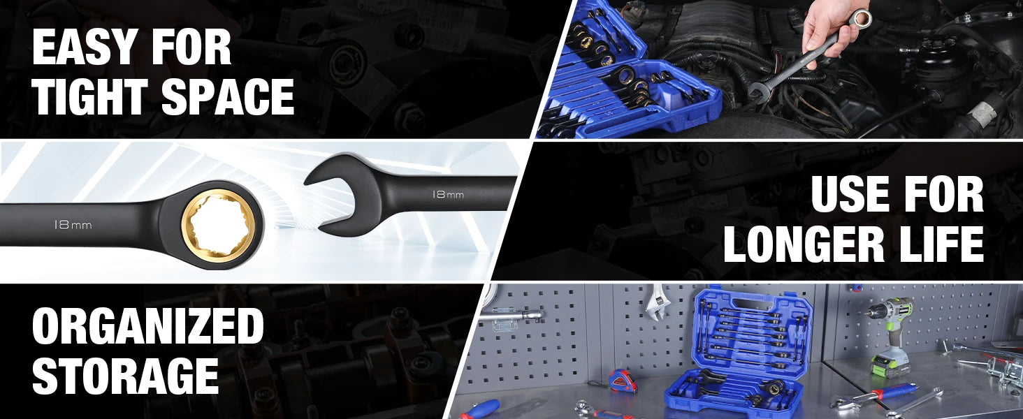 WORKPRO 22-Piece Ratcheting Wrench Set, Anti-slip Teeth, Ratchet Combination Wrench Sets with Organizer Box